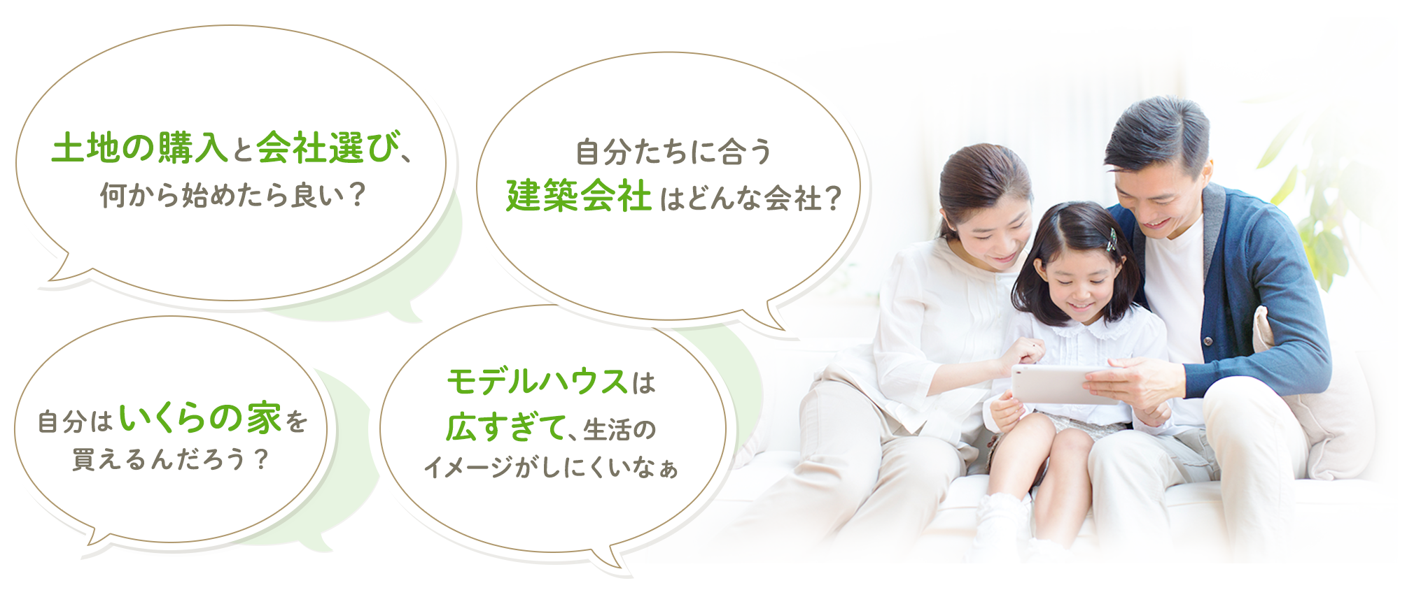 52万組(2025年3月末時点)のお客様をサポートしてきた実績から、はじめて注文住宅を建てる方が理解しにくいポイントやつまずきやすい問題を分かりやすく説明します。家づくりの不安やモヤモヤした気持ちが解消できます。
